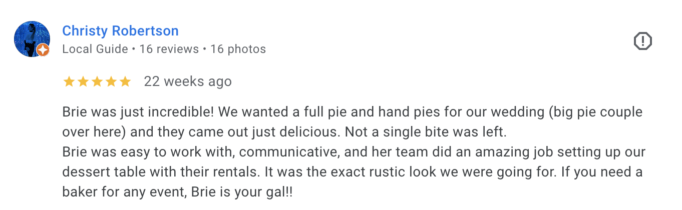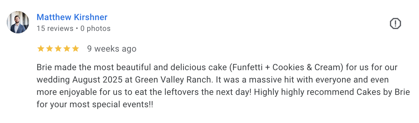 Made to order cakes and baked goods created with high quality, locally sourced ingredients.